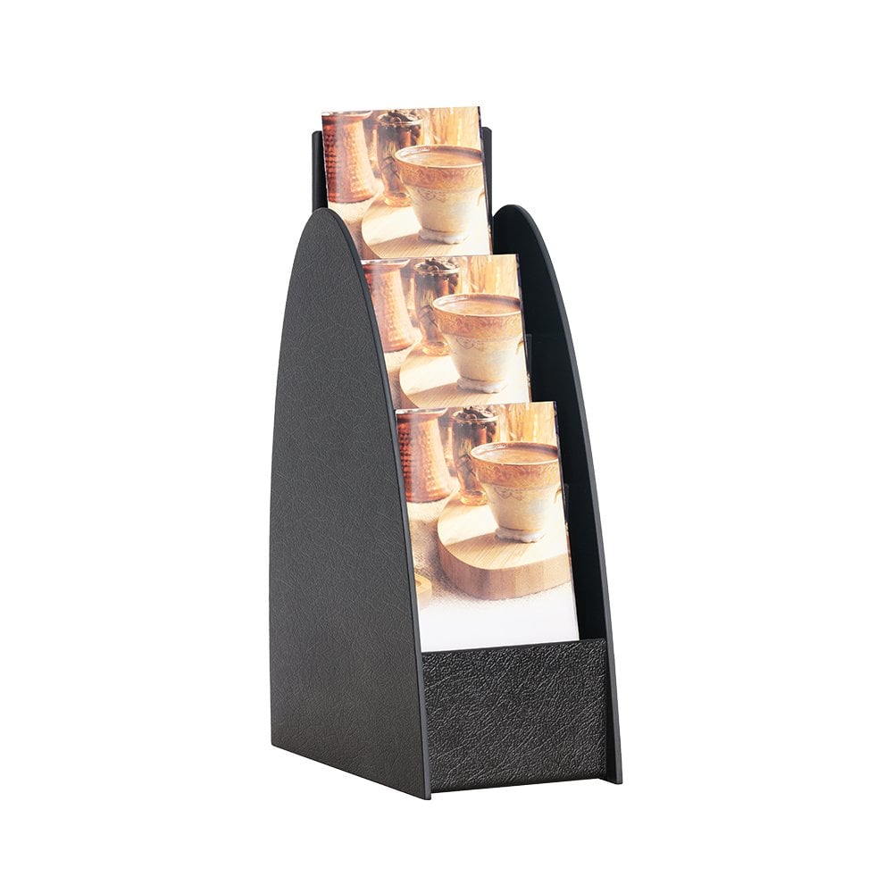 Şık ve sağlam siyah deri görünümlü PS malzemeden üretilmekte olan broşürlükler. 1/3 A4 büyüklüğündedir.