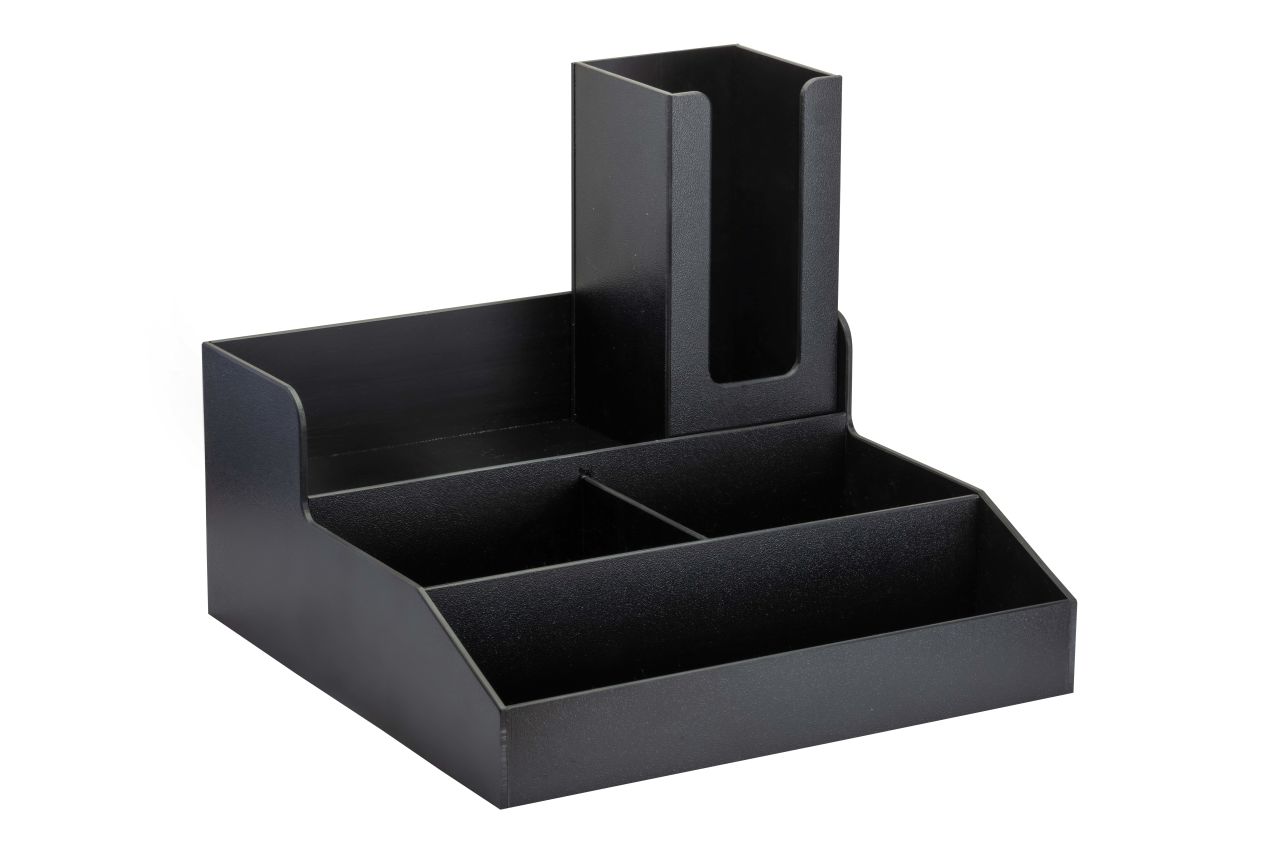 Kahve dükkanlarının mutfak kısımları için düzenleyici ünite, toplamda 2 göz, pipet koyma alanı ve 3 adet karton bardak tutucudan oluşmaktadır. Karton bardak tutucular, tercihinize göre ünitenin üst rafına kolaylıkla eklenebilmektedir.
