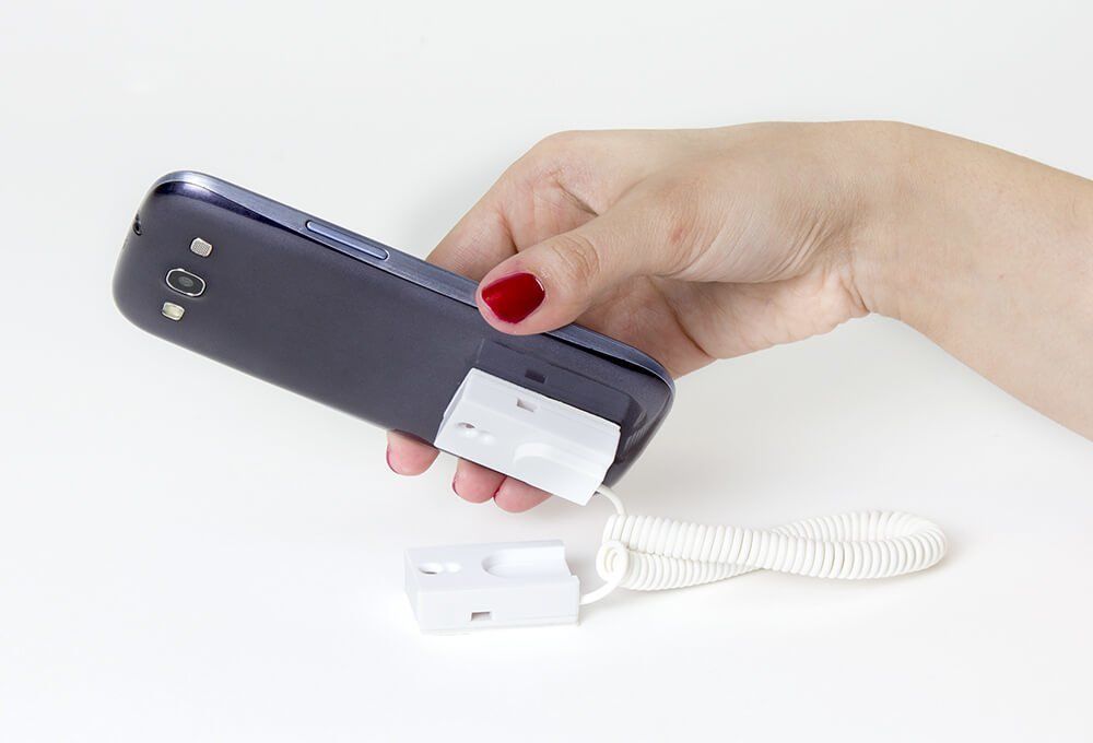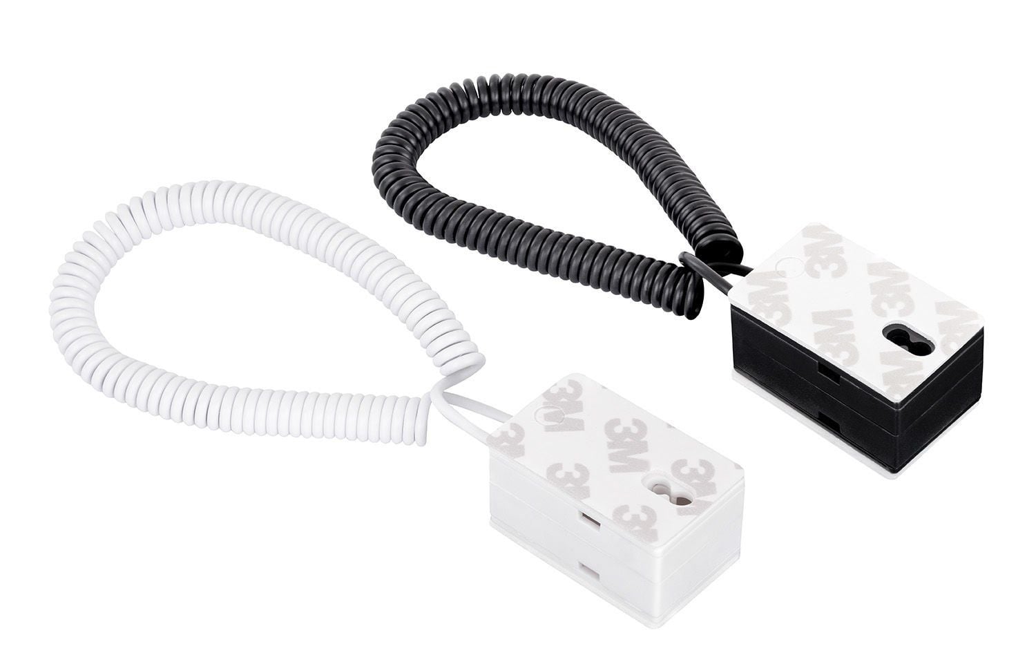 Dikdörtgen Demo ürün tutucu manyetik yapısı sayesinde kusursuzca birbiri üzerine oturmaktadır ve ürününüzü sabit sergileme imkanı sunmaktadır. Ayrıca ürünün üzerinde bulunan çift tarafı yapışkanlı bant sayesinde her türlü yüzeyde ürünlerinizi sergilemenize olanak sağlamaktadır. Ürünle Ürün tutucu arasındaki spiral kablo serbest halde 23 cm uzunluğunda iken 1 metreye kadar uzayabilmektedir bu sayede müşterilerinize ürünlerinizin her açıdan incelenmesine olanak sağlamaktadır. Ürünün yerine oturtulması mıknatıslı yapısı sayesinde oldukça kolaydır. Ürün siyah ve beyaz seçenekleri satılmaktadır.