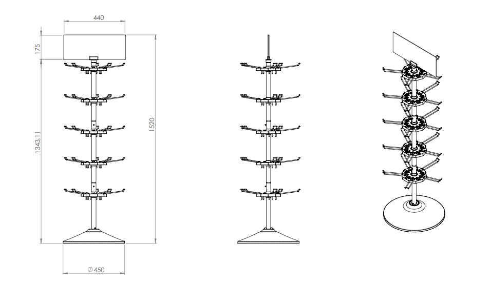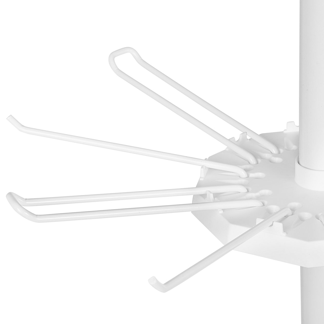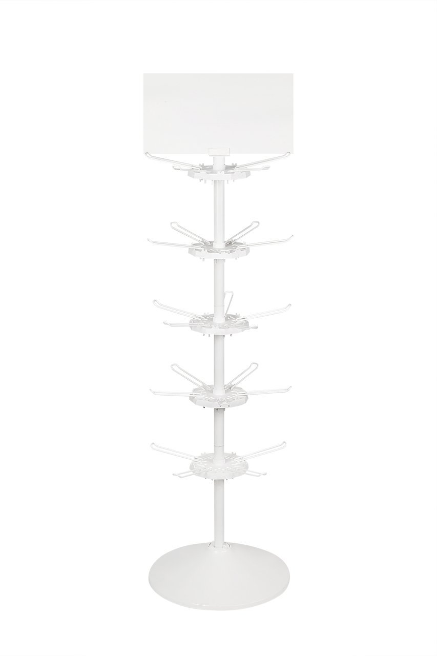 5 adet yüksekliği ayarlanabilir döner halkası, halka başına çift kollu 5 adet askı yardımıyla ürünlerinizi ihtiyaç ve sergileme alanınıza göre müşterilerinize sunabileceğiniz askılı ürün teşhir standımızın kancalarının kullanım uzunluğu her biri 175 mm'dir.